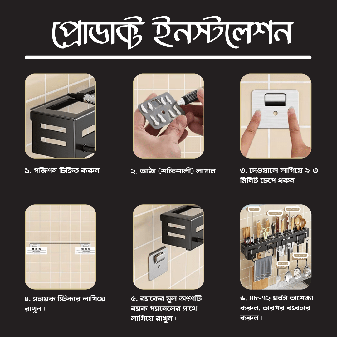 এই টুল হোল্ডারটির জন্য আমরা খুবই সহজ ইনস্টলেশন পদ্ধতি ডিজাইন করেছি। শক্তিশালী আঠা ব্যবহার করে ড্রিল বা পেরেক ছাড়াই এটি লাগানো যায়, ফলে ঝামেলাপূর্ণ ইনস্টলেশন পদ্ধতির প্রয়োজন নেই।